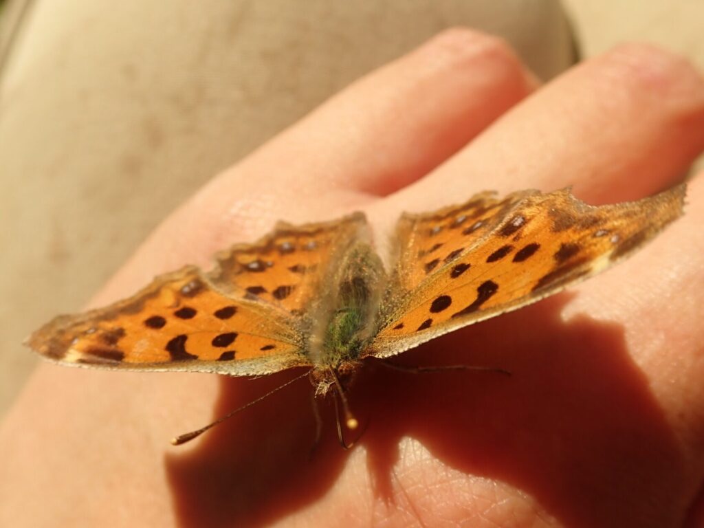 最初は警戒していたのに、手からしみ出る汗が美味しかったのか最後は反対の手で払わないと飛んでいきませんでした。この子はここで越冬するのかな?